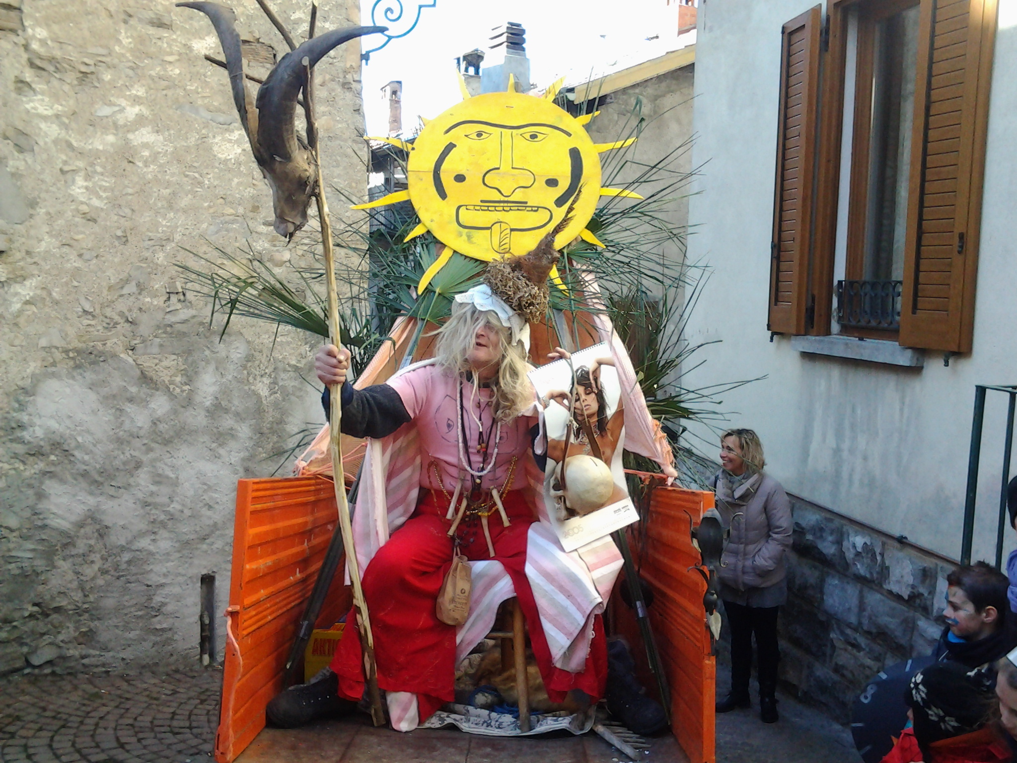 Un carro trainato da un ciuchino, con a bordo alcuni oracoli Maya che profetizzano scenari improbabili, è stata l’attrazione “alternativa” all’interno del tradizionale corteo del Carnevale di Schignano andato in scena questo pomeriggio. Una comparsata non certo passata inosservata, visto anche il grado di “esuberanza” dei protagonisti in maschera che, agghindati come degli antichi santoni Maya, esortavano i presenti a salvare il salvabile e ad ascoltare i propri suggerimenti a dir poco strampalati. Uno spasso.