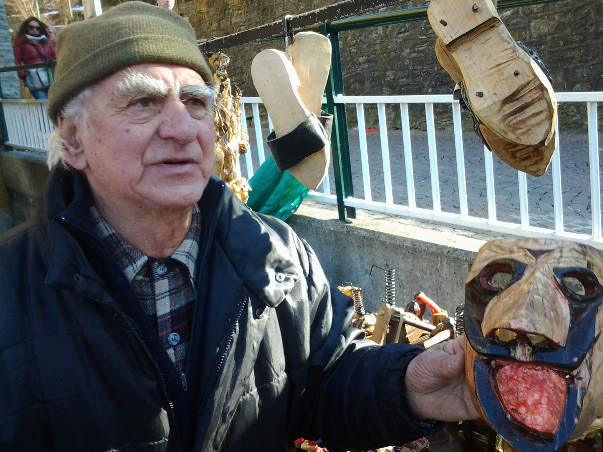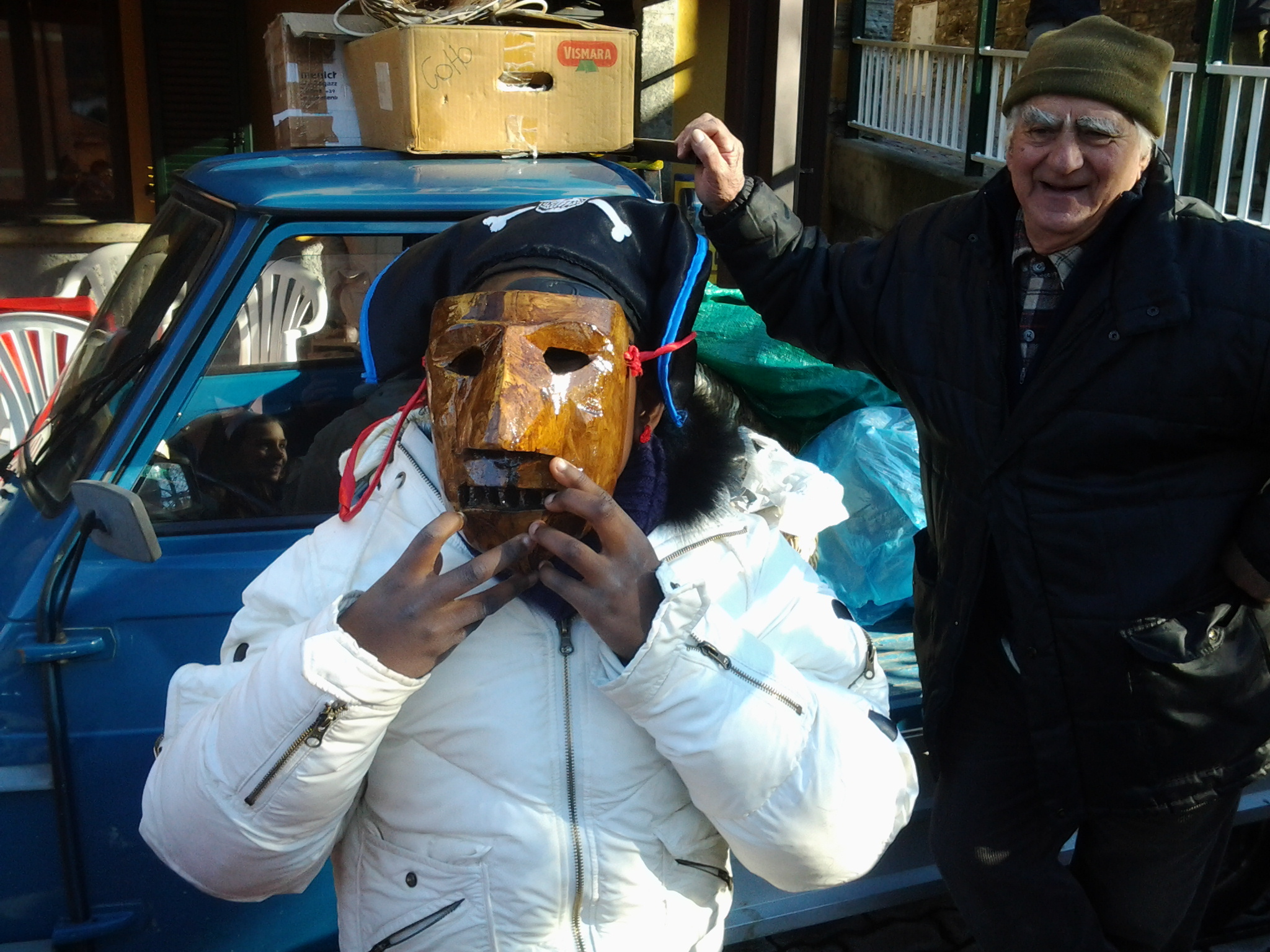 Prima di lasciarci, Lino racconta poi una curiositĂ mostrando una maschera dalla bellezza straordinaria. “Questa qui ha alle spalle una storia bellissima. L’ho realizzata con una radice di noce,una delle ultime trovate nei nostri boschi. Ma sono tanti gli aneddoti da raccontare. A Retegno, ad esempio, nella mostra di maschere allestita, ci sono le mie “bisce” di legno. Le ho realizzate scavando un legno che era stato utilizzato per creare gli addobbi floreali in occasioni di una festivitĂ in paese. A manifestazione conclusa, erano stata gettati nella vallata del torrente. Quando me ne sono accorto mi son detto: è uno spreco, questi legni son bellissimi. E così sono sceso a recuperarli e li ho lavorati fino a produrre le bisce che potete vedere esposte”.